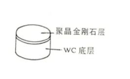复合片(即聚晶金刚石复合片)是切削齿的核心。复合片一般为圆柱状,其结构如1-3所示,它是由人造聚晶金刚石薄层及碳化钨底层组成,具有高强度、高硬度及高耐磨性,可耐温度750℃。